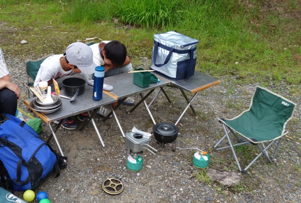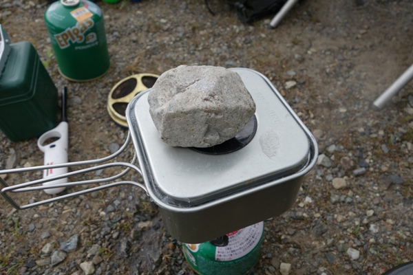 ご飯を炊きます。雷鳥沢の時よりはうまく炊けました。石の効果かな? |