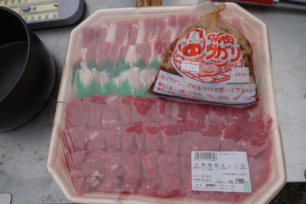 網は忘れたけどお肉はしっかり買ってきました。。まあ、結局サイトで炭を熾してはいけなかったのですが。。 |