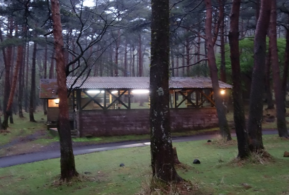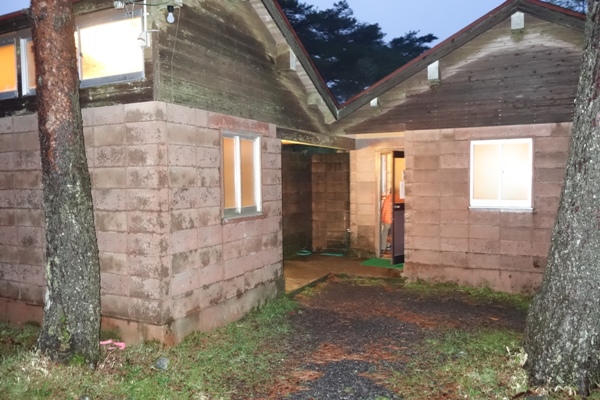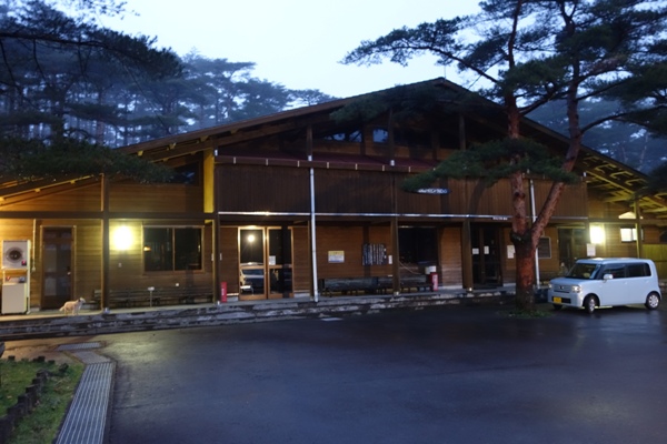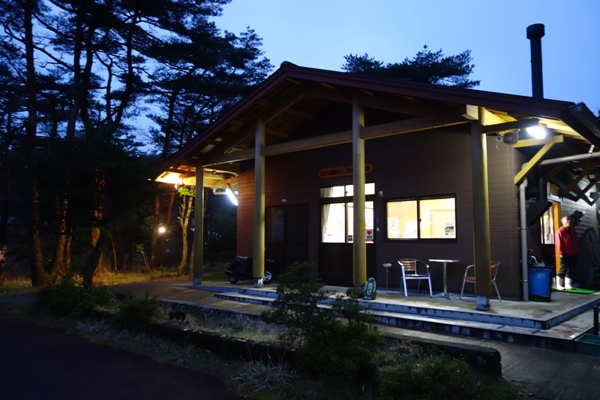 管理棟。キャンプ場の受付はこちら。5月ですがストーブついてました。 |