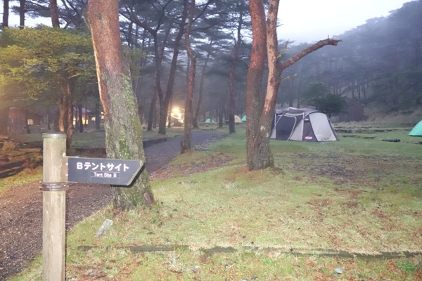 フリーテントサイト。ちょっと傾斜してるよう。 |