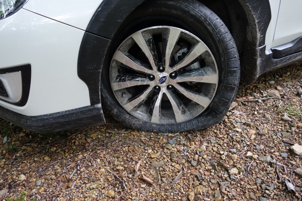 なんとか電波の入るところまで歩いてJAFに連絡。