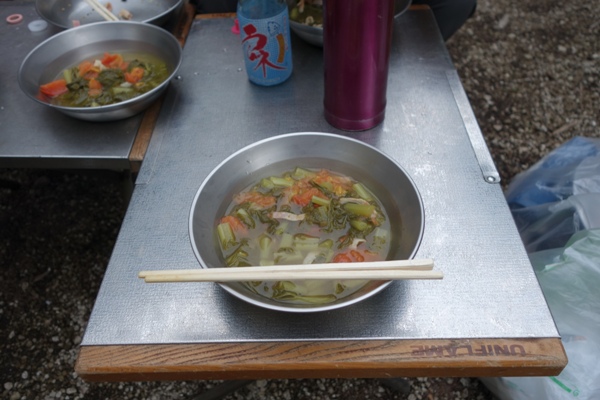 こちらは大根の葉を入れたスープ。美味しくいただきました。 |