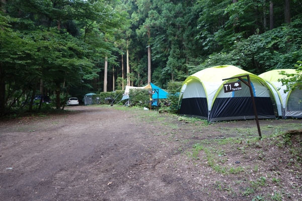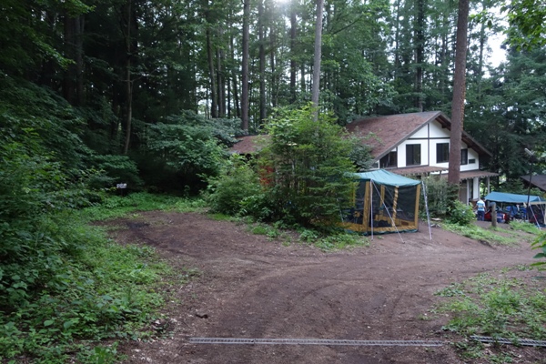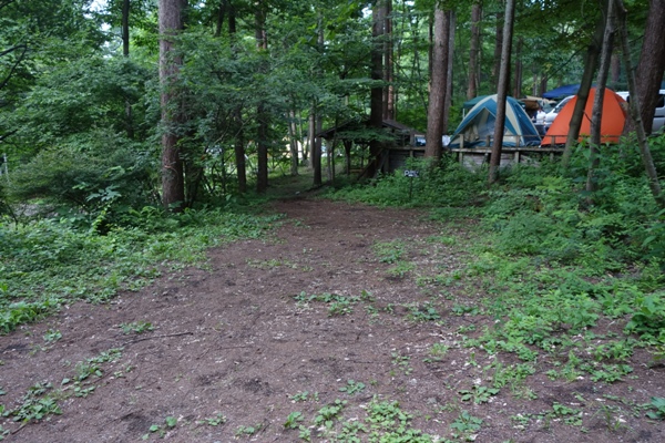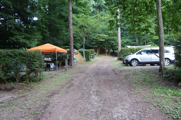 キャンプサイト。垣根で区切られてる土のサイトです。 |