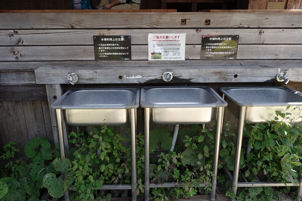休憩所前にある水場。ゴミや洗剤は流さないようにとのこと。 |