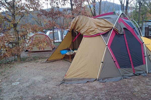 家族はまだ寝袋の中。場内を散歩してました。 |