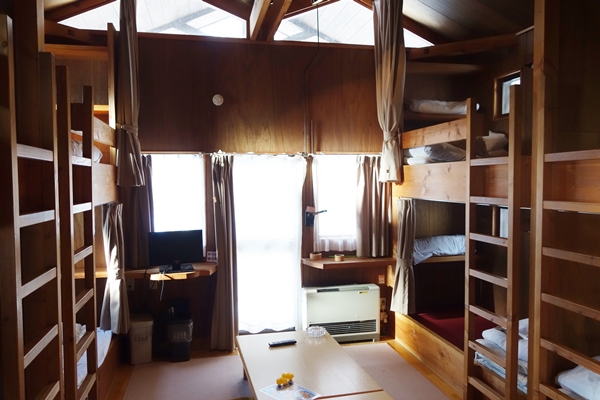 両側に2段ベッドがあります。使わない4人分は荷物置き場に出来て広々使えました。 |