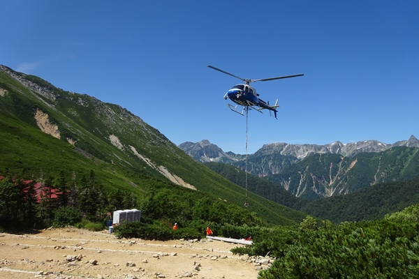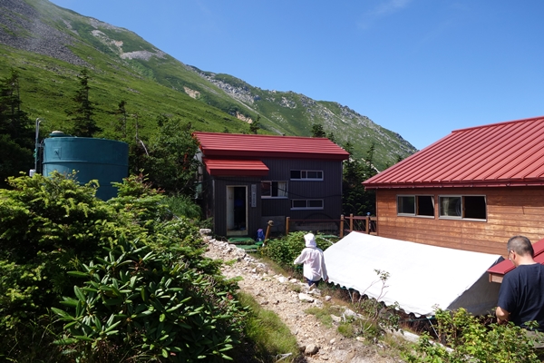 奥にあるのが夏季診療所。北アルプスには多いのでしょうか。 |
