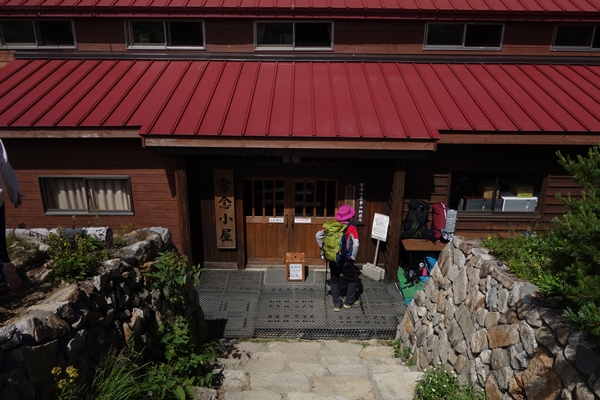 受付は常念小屋で。食堂、売店充実しています。水は200円/Lで、流し台でセルフサービスでした。 |