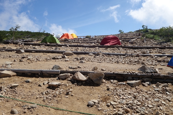 奥側のサイト。段々畑状に整備されていて、山のサイトとしてはかなり平らで使いやすいです。 |