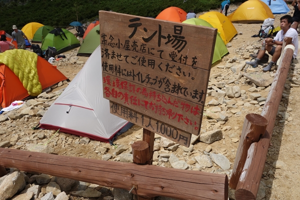 奥側のサイト、槍ヶ岳と北穂高岳が眼前に広がる素晴らしいロケーション。 |
