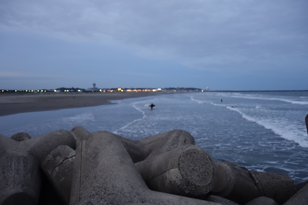 暮れゆく海にまだサーファーさんがいらっしゃいました。 |