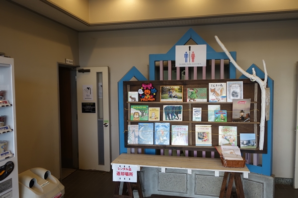 子供向けの図書コーナーも。夜間はトイレと自動販売機のみ利用可能でした。 |