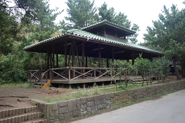 バーベキューエリア横の炊事棟。全体で1ヶ所しかないので遠いサイトは不便かも。 |