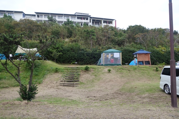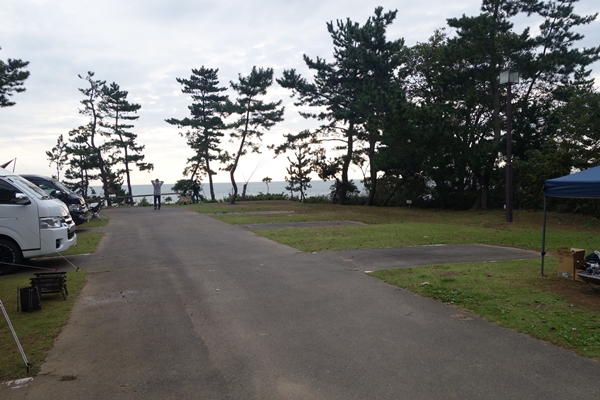 今回利用したサイト(No.19〜27)。フリーサイトっぽいですが、区画線があります。 管理棟から一段下がったところに有り眺めはありません。 |