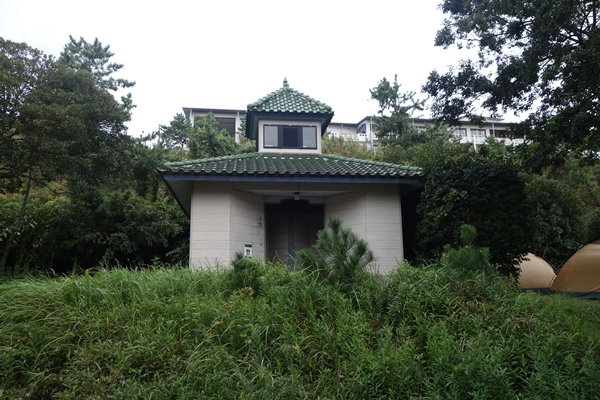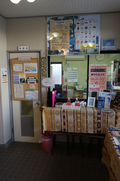 管理棟。受付や売店、トイレ、シャワーなどがあります。 |
