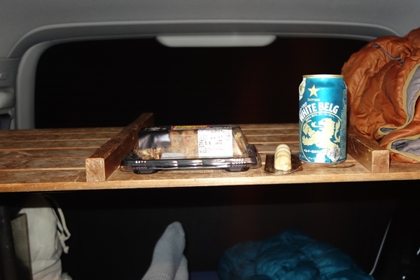 買い出ししたおつまみで一杯やってそのまま車中泊。 |