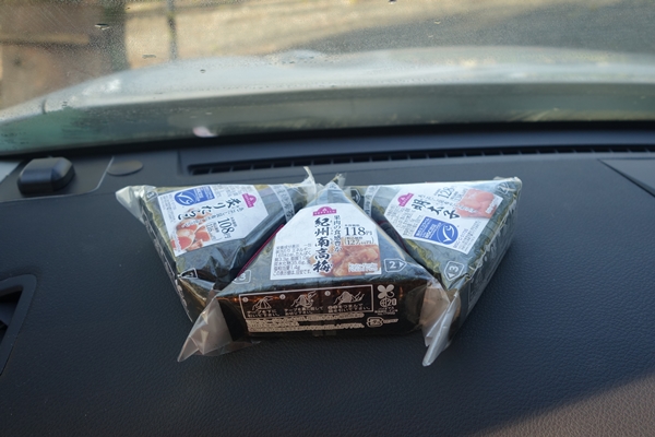 朝食はおにぎり3つ。この後、目的地の摩耶山へ。 |
