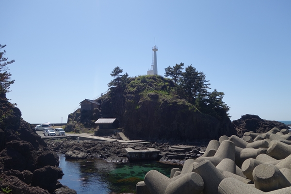 摩耶山から下山後、もう一つ見たかった日本海側をドライブし、荒埼灯台へ。 |