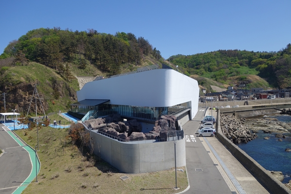 クラゲで有名な加茂水族館が横にあります。施設には立ち寄らず。。 |