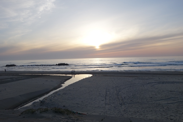 夕陽を見るべく湯野浜海水浴場へ。残念ながら雲が出て沈むところは見れず。 |