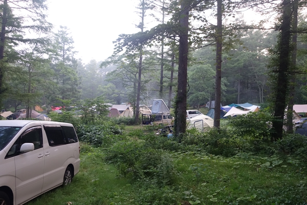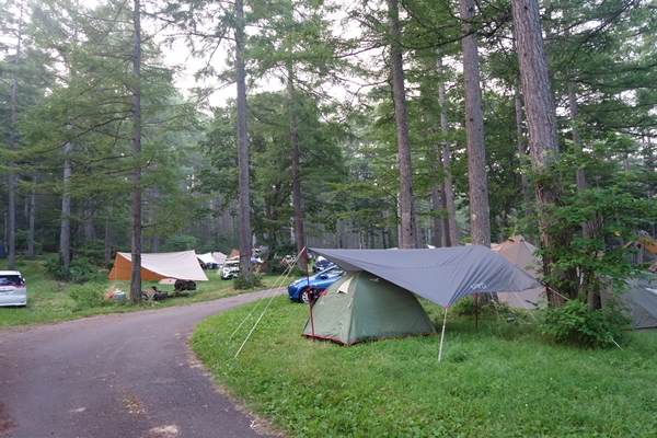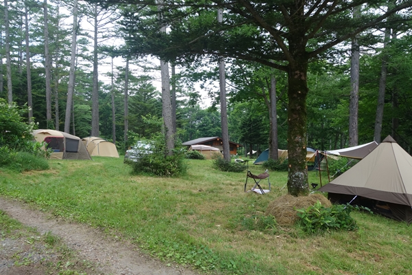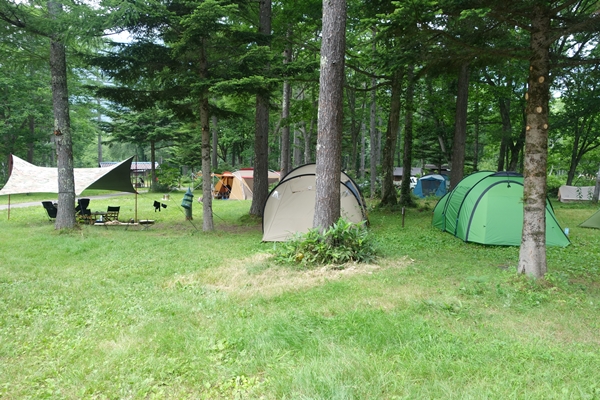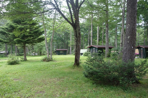 利用したサイトあたり。どこも林間サイト。傾斜があるところもありました。 |
