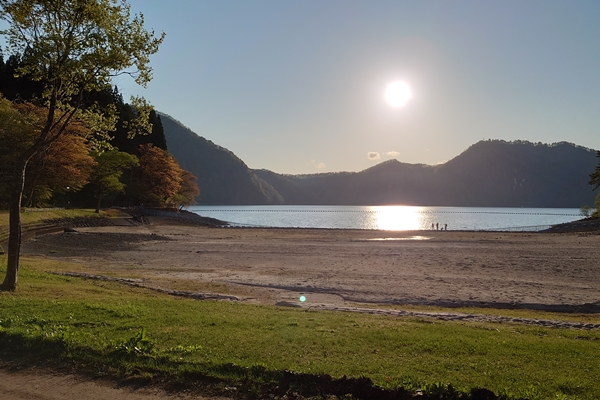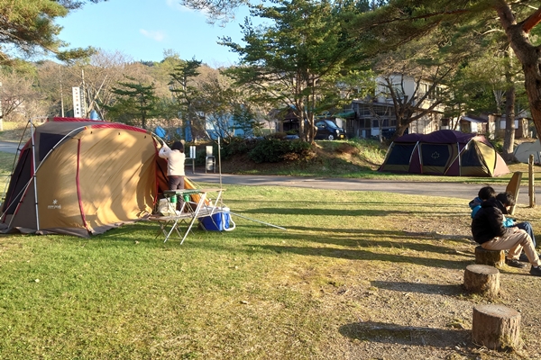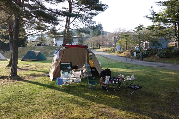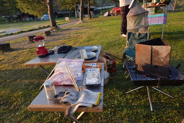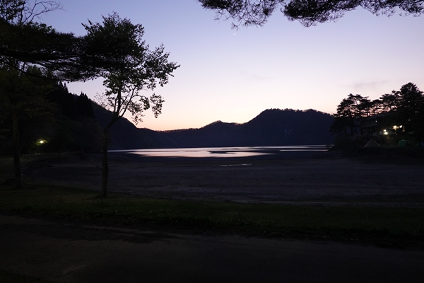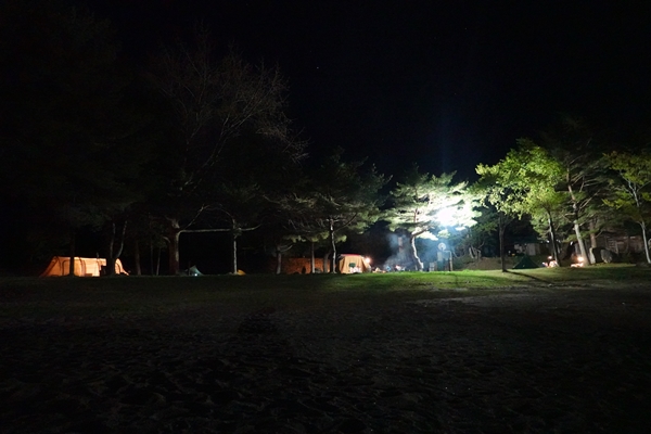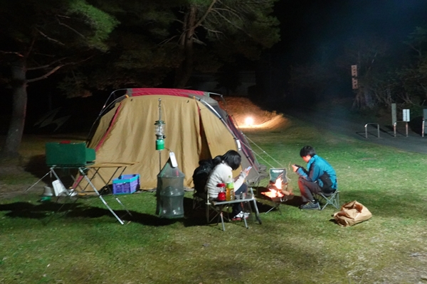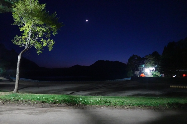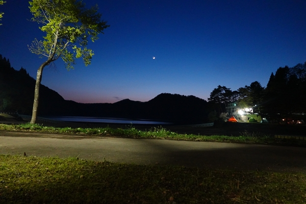 キャンプ場に戻りました。すでに陽が落ちてきています。 |