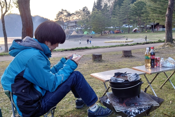 キャンプ場でもゲームにいそしむ子供達。。 |