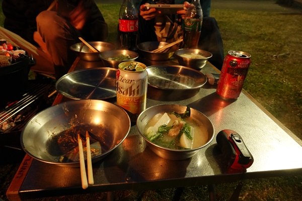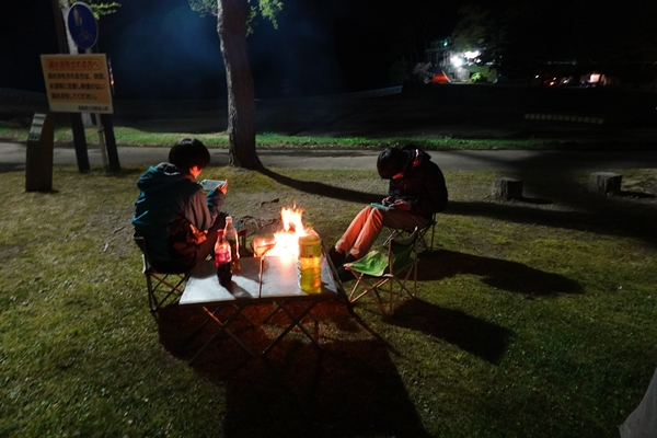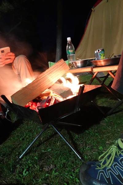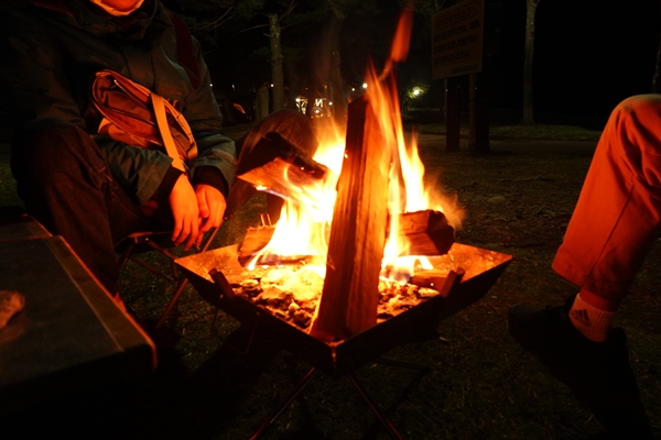 今日も食後は焚火。ここは管理棟でもいい薪売ってます。 |
