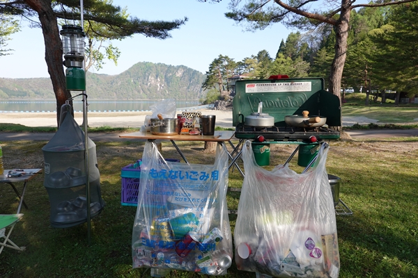 3日目の朝もいい天気。熊が出たこともあるらしく、ゴミは夜はハードクーラーの中に入れてました。 |
