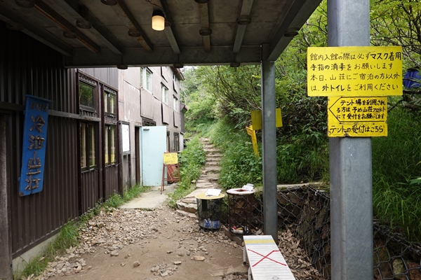 コロナ禍で検温やマスク着用が必要です。トイレもサイトから山荘まで下りてくる必要があります。 |