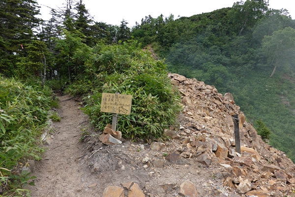 以前は右側の崖側が道だったようですが、迂回路がすっかり道らしくなり安全です。 |