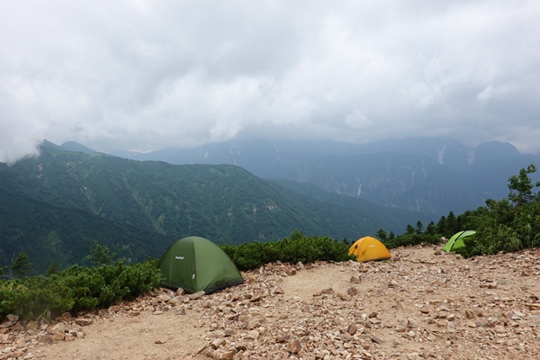 こちらは爺ヶ岳。展望の良いテント場です。 |