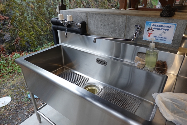 そんな私に心強い味方・・・お湯も洗剤もたわしも完備されている流し台があるじゃありませんか! |