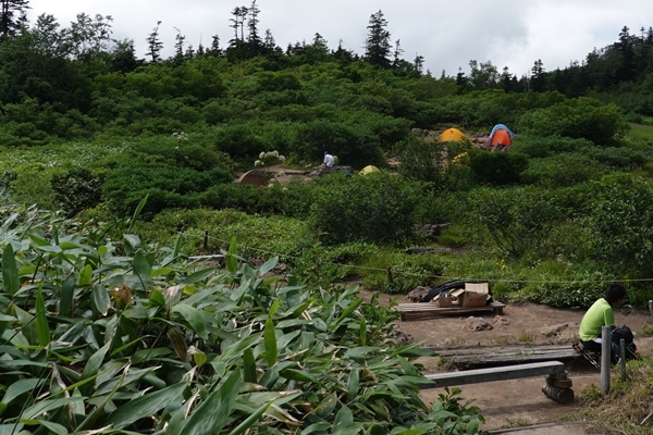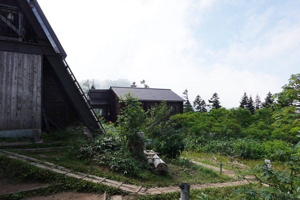 テントサイト側からヒュッテを望む。そんなに遠くないです。 |