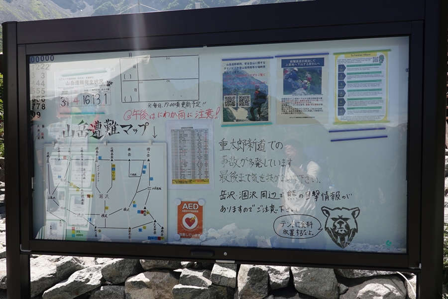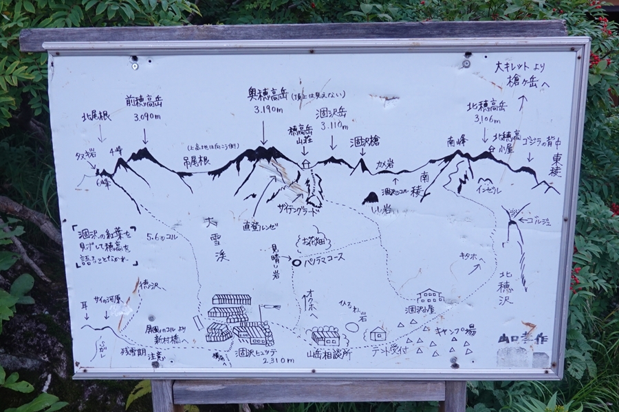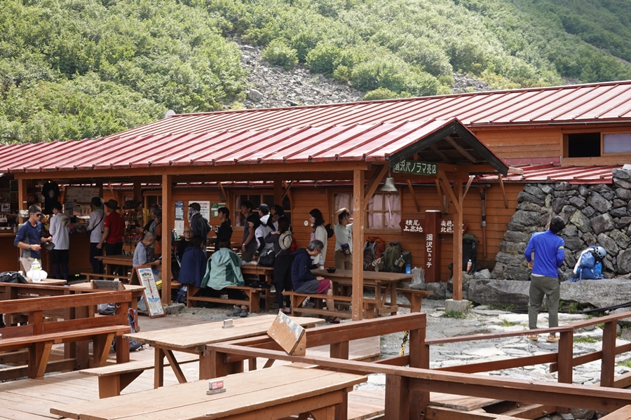 涸沢小屋から見たテント場。2つの小屋の間にあります。 |