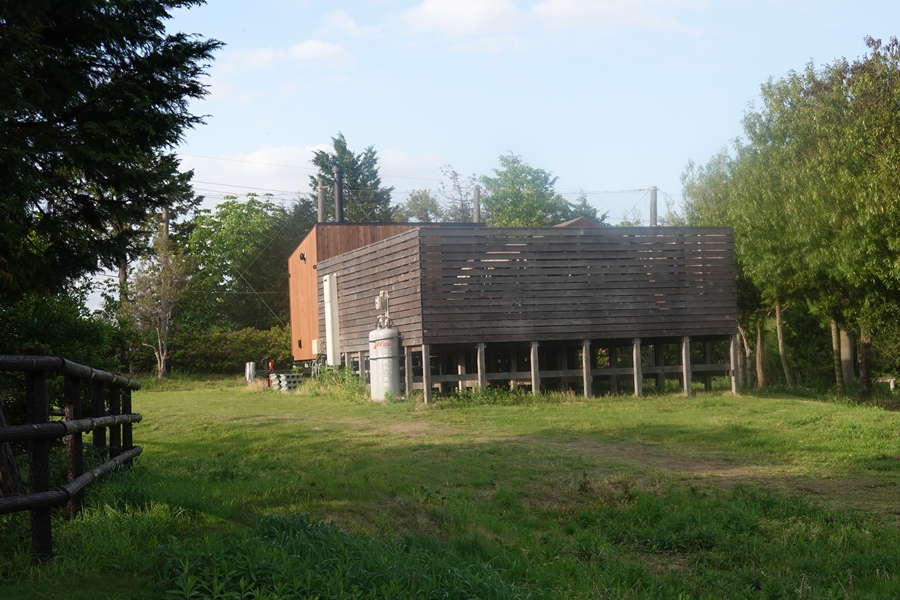 ソロ・デュオサイトにあるサウナ棟。次男リサーチによると予約制とのこと。 |