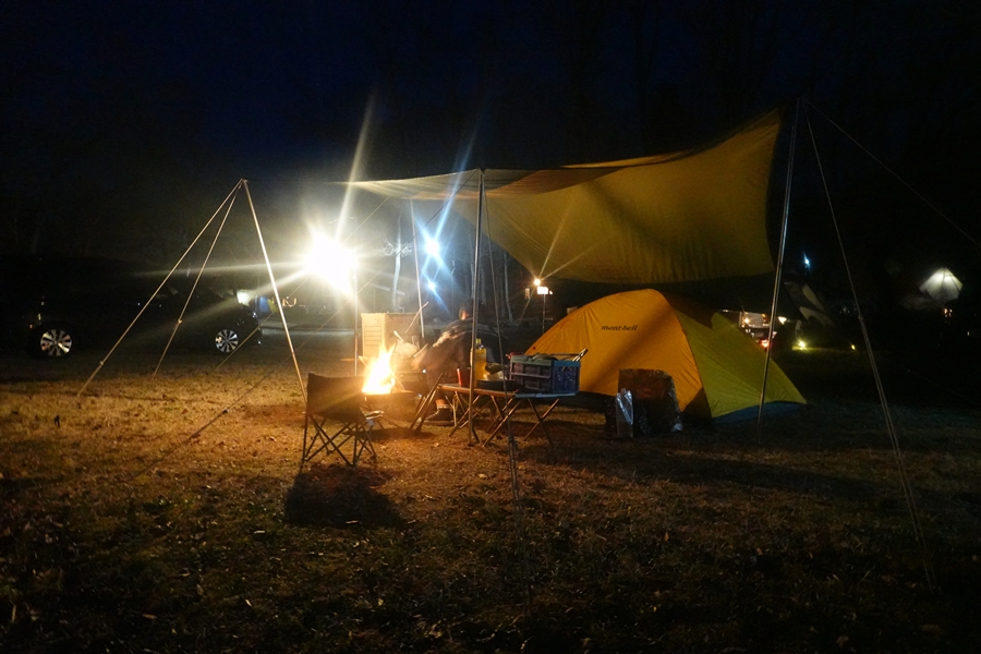千葉に比べてだいぶ肌寒いので焚火が欠かせない夜。 |