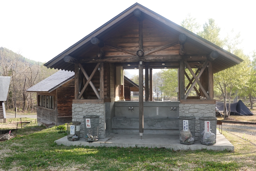 Aサイト横の炊事棟。ここはお湯が出るようです。Dサイト内の炊事棟以外はお湯が出る? |