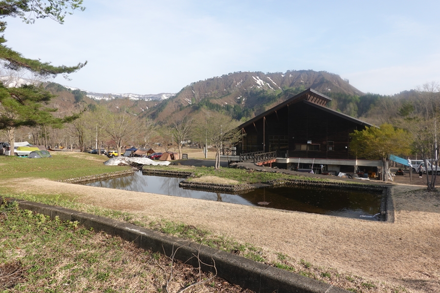 管理棟。1Fはトイレやシャワー室などがありきれい。 受付は2Fで薪やカップラーメン等を売っている売店の他、生ビールセットもあるようでした。 |