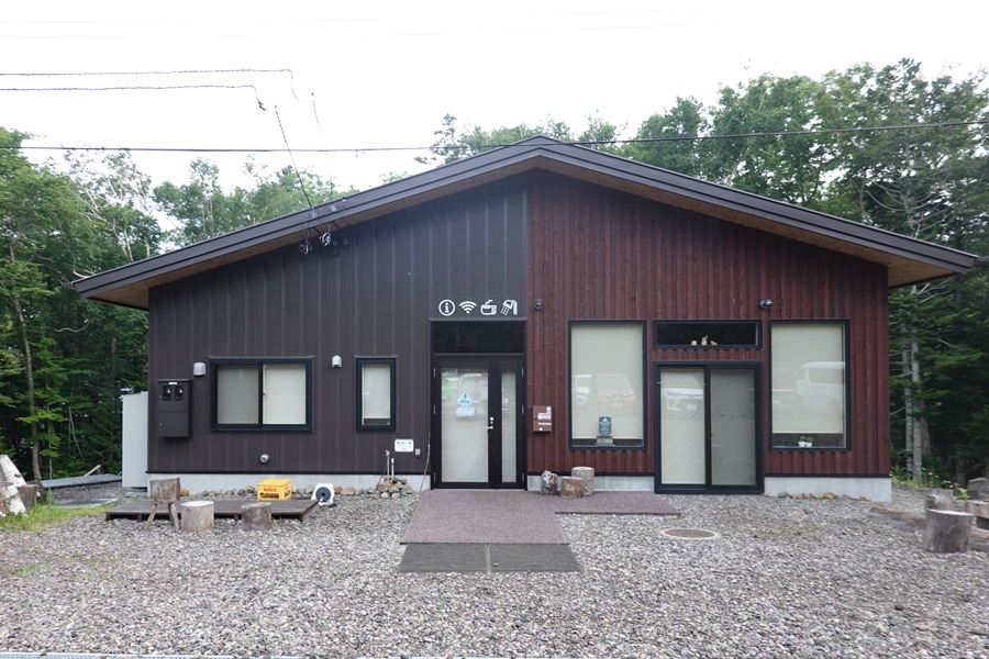 オンネトー国設野営場の管理棟。Cafeコーナーが併設されている真新しい建物でした。 |