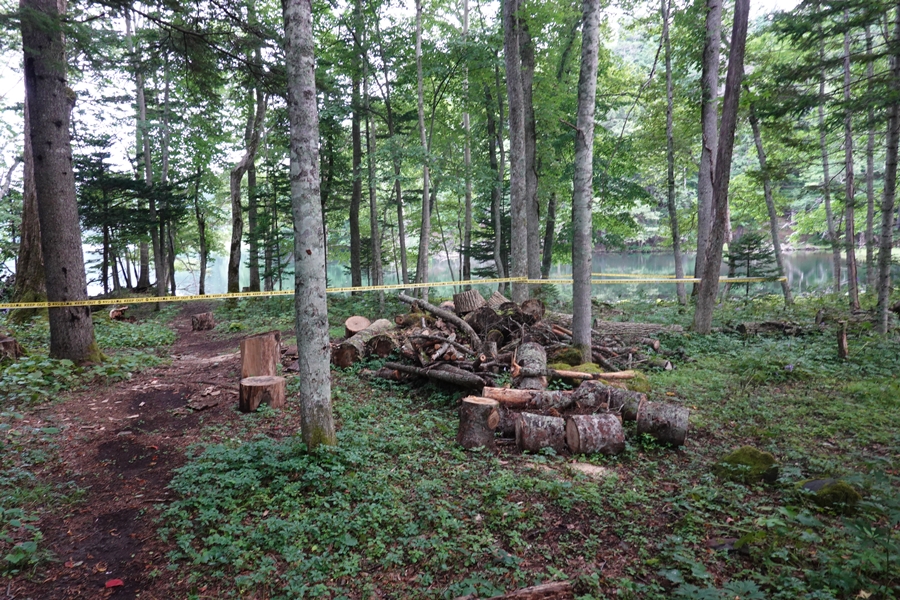 サイト奥にテープが貼ってあるところは倒木の恐れありとのことでした。 |
