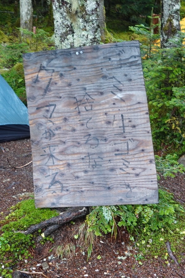 小屋の横に広いテントサイトがあります。 |