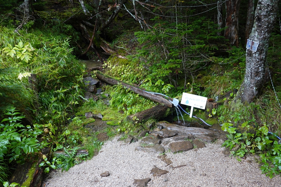 小屋の前にある水道。流れっぱなし、汲み放題の南アルプスの天然水。 |