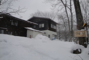 雪の中のペンション。床暖であったかかったけど、この辺の冬は厳しいんだろうな。