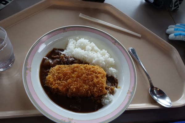 子供たちは裏磐梯スキー場で食べられなかったカツカレーを食べて満足。 |