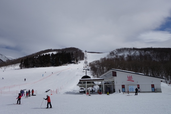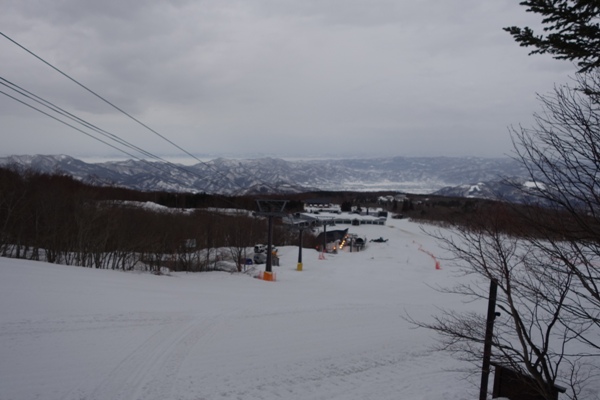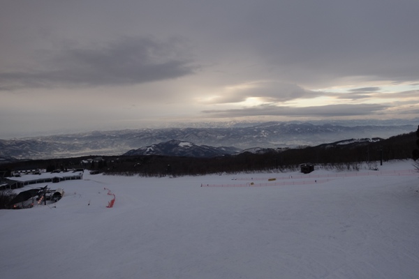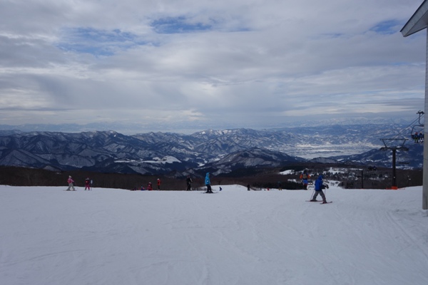 クワッドリフトを下りたところから。周りに雪をかぶった山が広がっていてなかなか良い眺め。 |