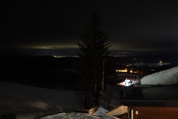 部屋から上山市の夜景も見えます。前日の飲み会で寝不足のため早々(20時)に就寝。。 |