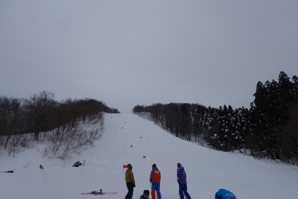 3年前は非常に寒かった上部のコース、今年はポカポカ。。。雪質も3月の春スキーの感じでぐずぐず。 |