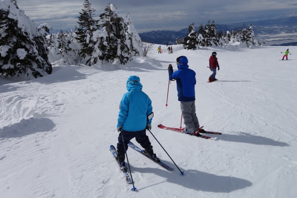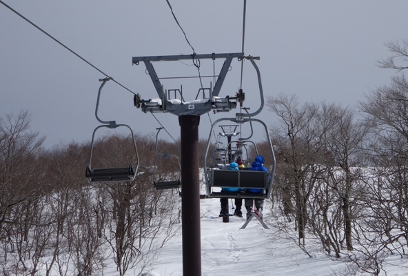 子供達仲良くペアリフトに乗ってスキー場の最上部へ。 |