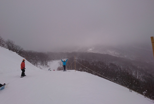 だんだんガスってきました。今年は圧雪されていたので猫魔ボウルエリアも比較的すべりやすかったな。
